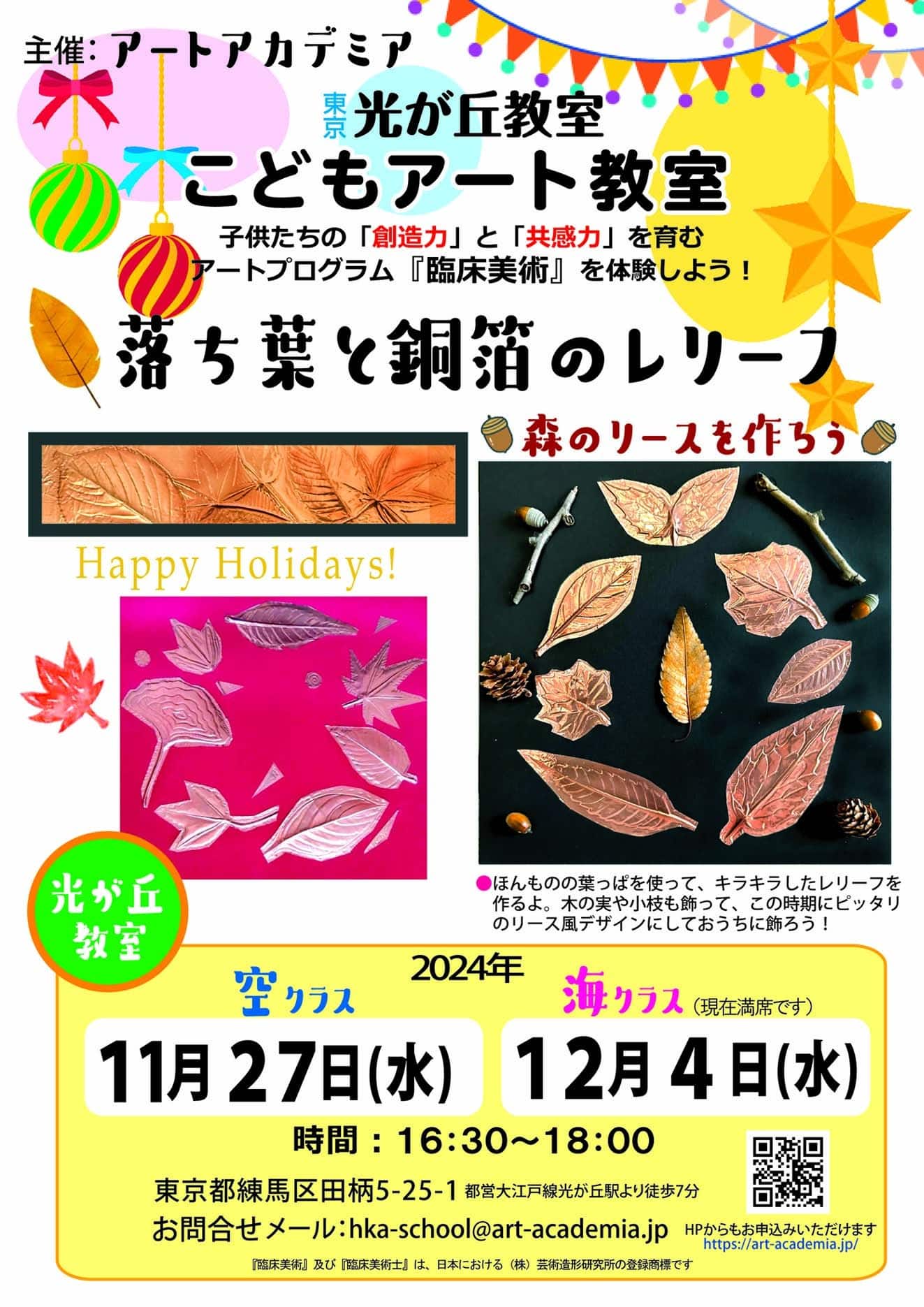 光が丘こどもアート教室11月「空クラス」・12月「海クラス」のレッスンは『落ち葉の銅箔レリーフ』です。