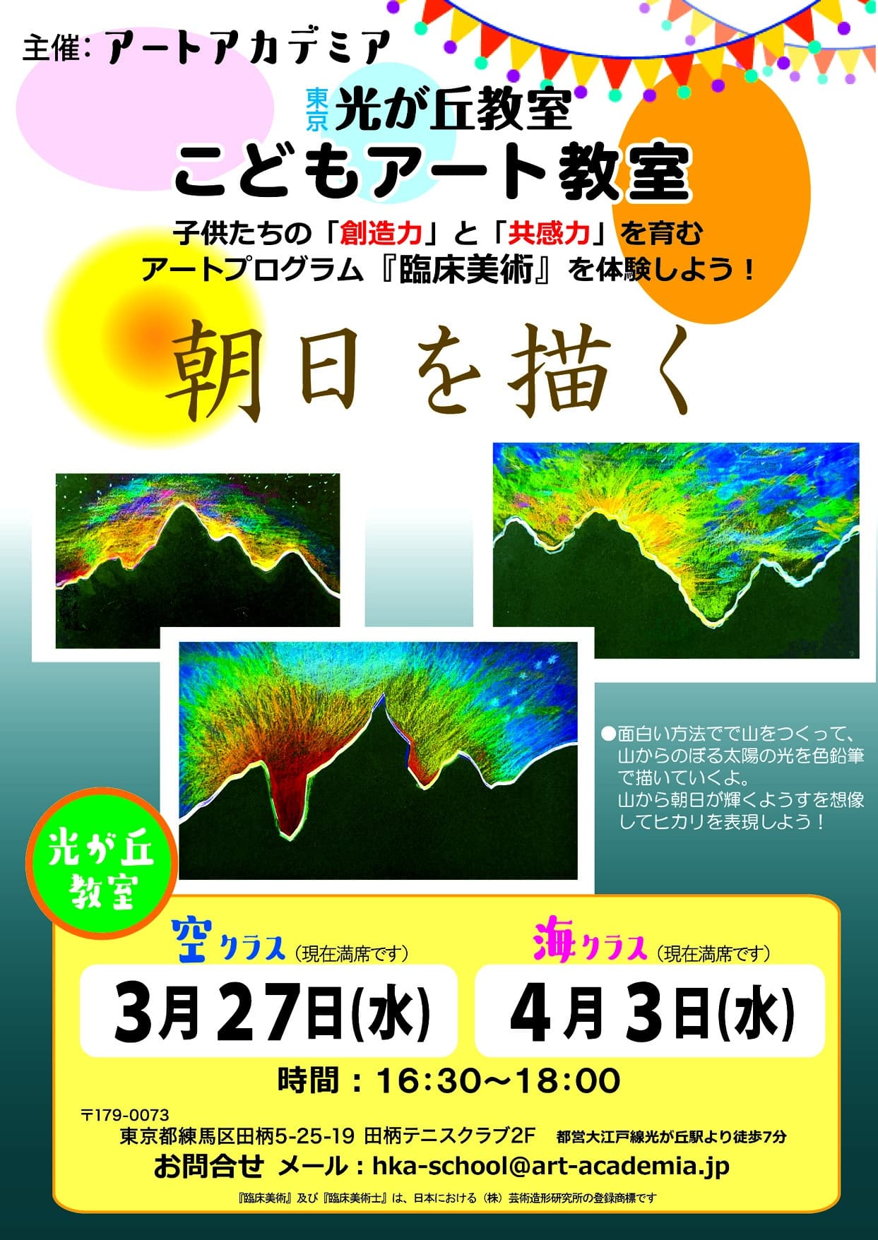 光が丘こどもアート教室3月「空クラス」・4月「海クラス」のレッスンは『朝日を描く』です!