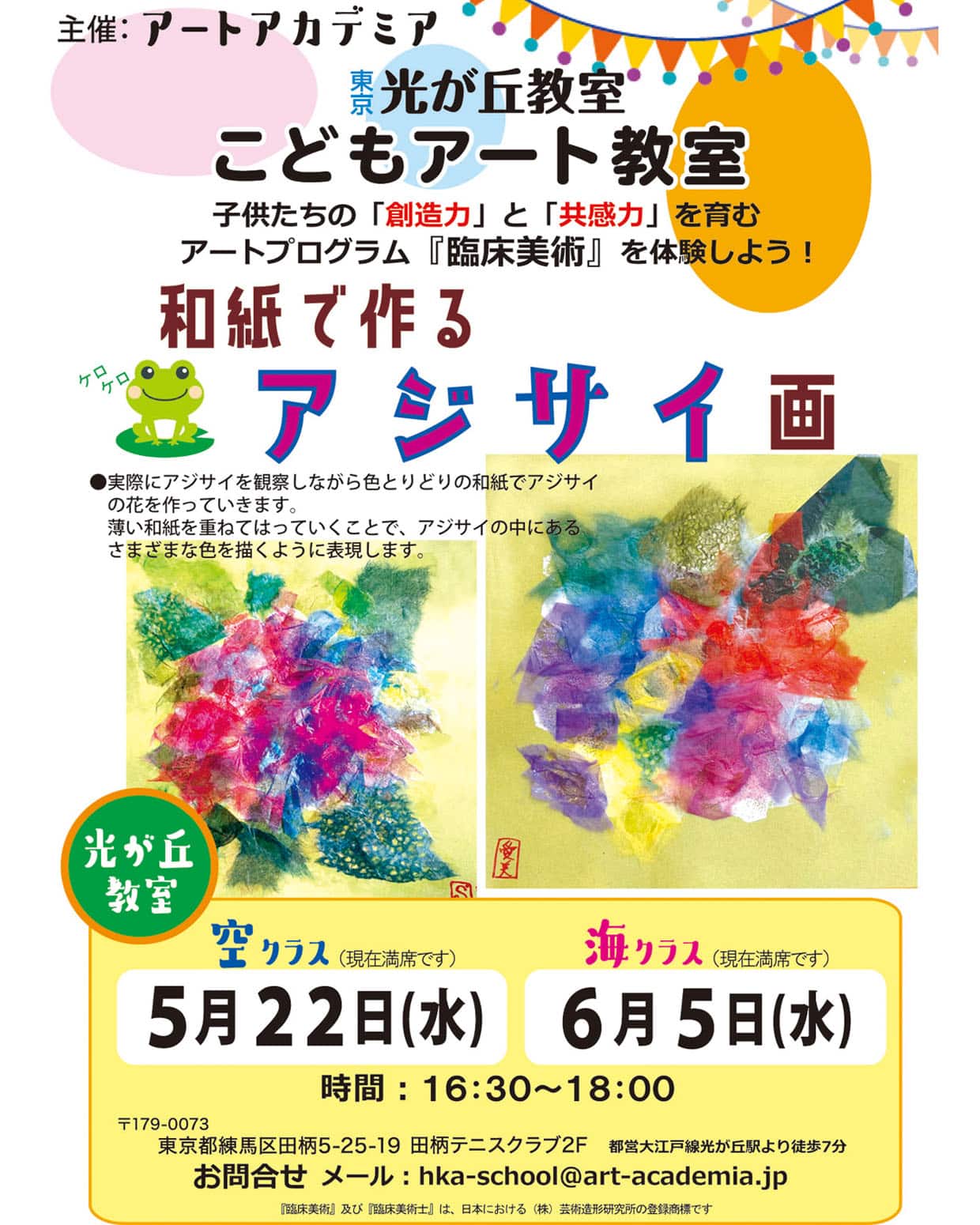 光が丘こどもアート教室5月「空クラス」・6月「海クラス」のレッスンは『和紙で描くあじさい画』です!