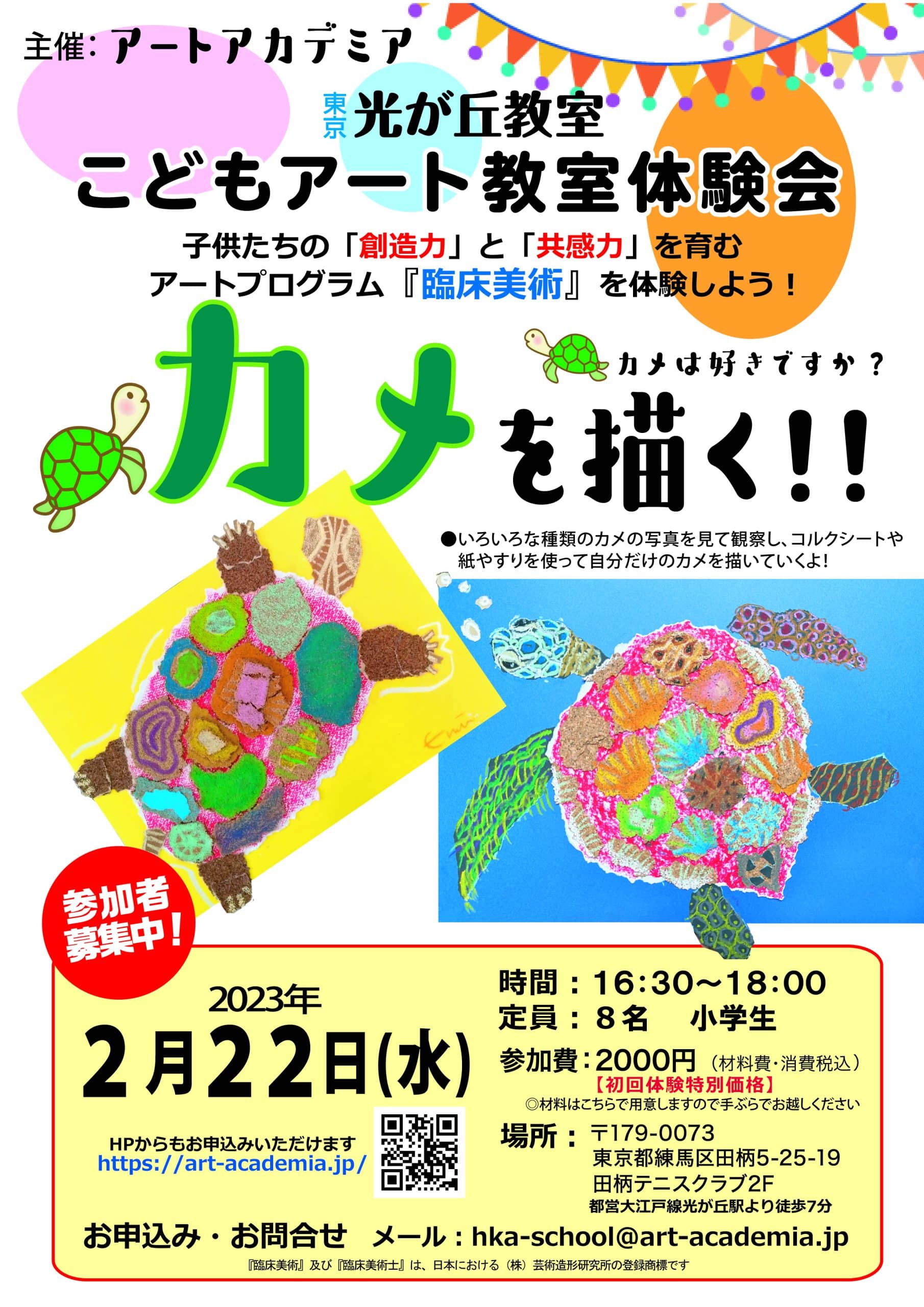 2月22日(水)光が丘教室にてアートワークショップ「カメを描く!!」を開催します。