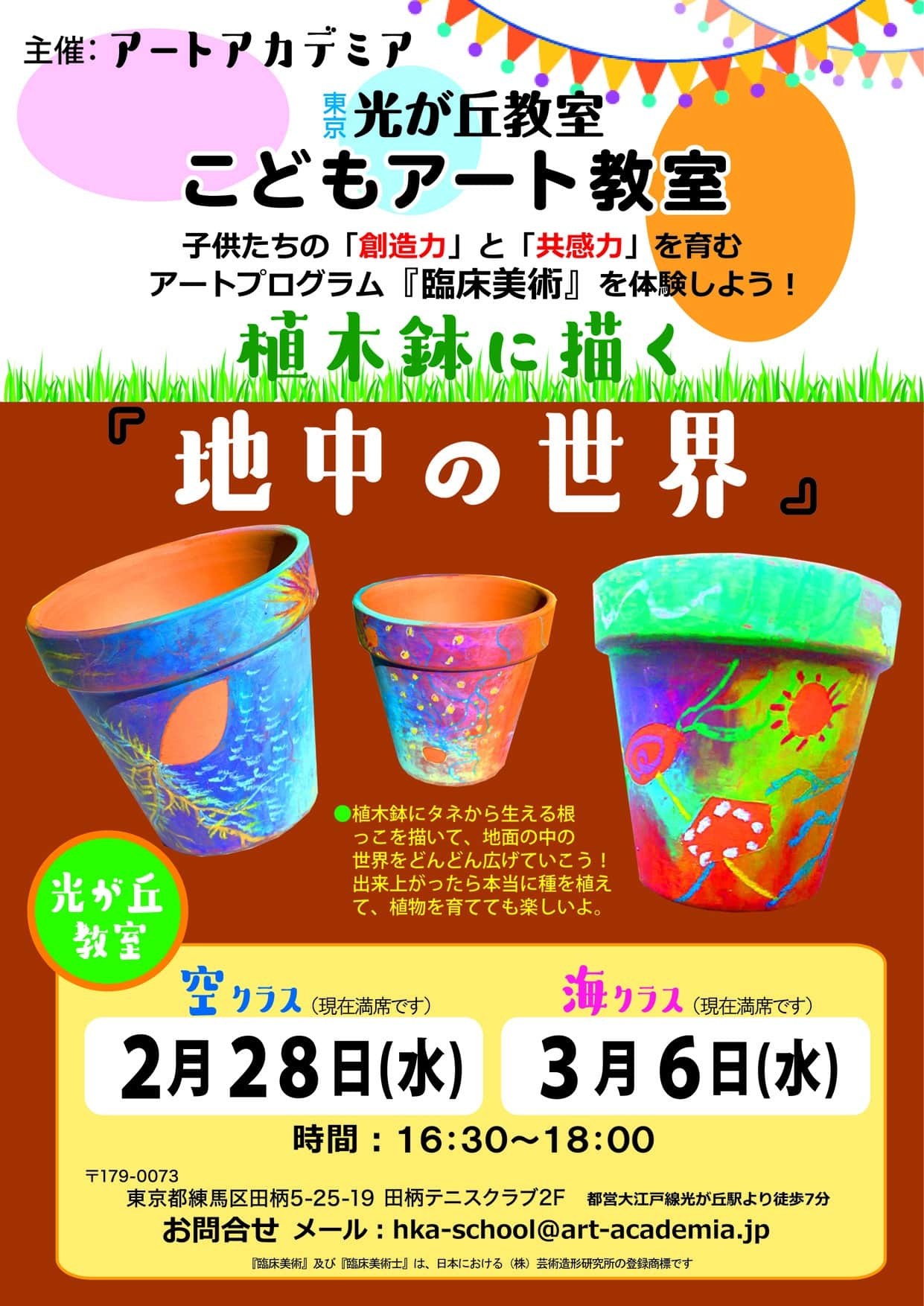 光が丘こどもアート教室2月「空クラス」・3月「海クラス」のレッスンは『植木鉢に描く、地中の世界』です!