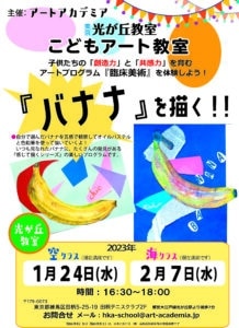 光が丘こどもアート教室1月「空クラス」・2月「海クラス」のレッスンは『バナナを描く!!』です! 自分で選んだバナナを五感で観察してオイルパステルと色鉛筆を使って描いていきます。 いつも見なれたバナナに、たくさんの発見があ […]