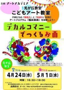 光が丘こどもアート教室4月「空クラス」・5月「海クラス」のレッスンは『デカルコマニーでつくるお面』です! デカルコマニーという技法を使ってお面をつくります。偶然できる色の形から想像して面白い顔をみつけて描いていこう。 想 […]
