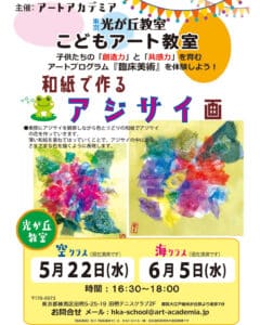 光が丘こどもアート教室5月「空クラス」・6月「海クラス」のレッスンは『和紙で描くあじさい画』です! 本物のアジサイの花を観察しながら、和紙を描くようにはって今の時期にピッタリな作品をつくります! 薄い和紙を重ねてはること […]