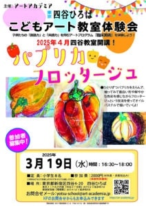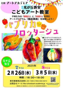 光が丘こどもアート教室2月「空クラス」・3月「海クラス」のレッスンは『パプリカフロッタージュ』です。 ひとりずつパプリカをえらんで、 見て触って面白い形や鮮やかな色彩を感じながらフロッタージュという技法を使ってオイルパス […]